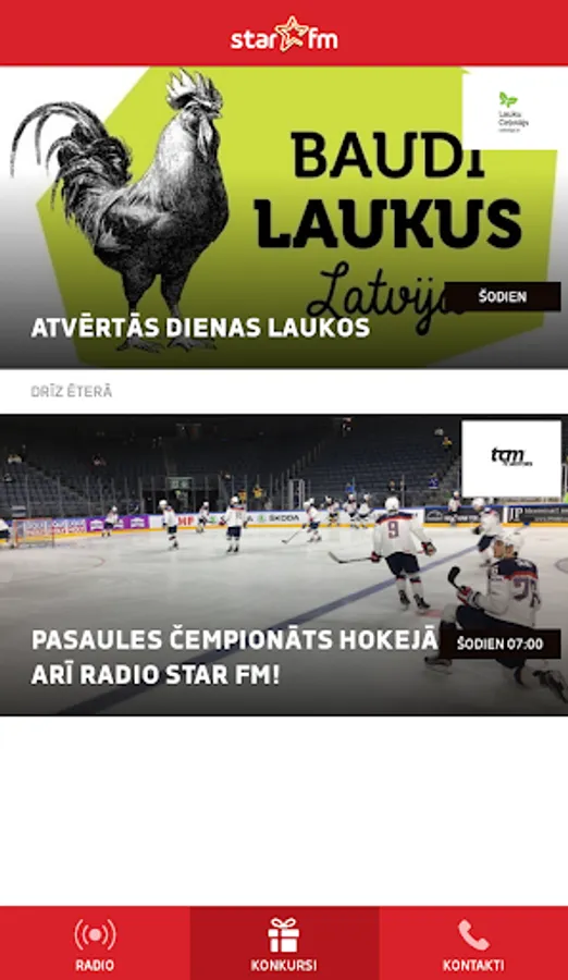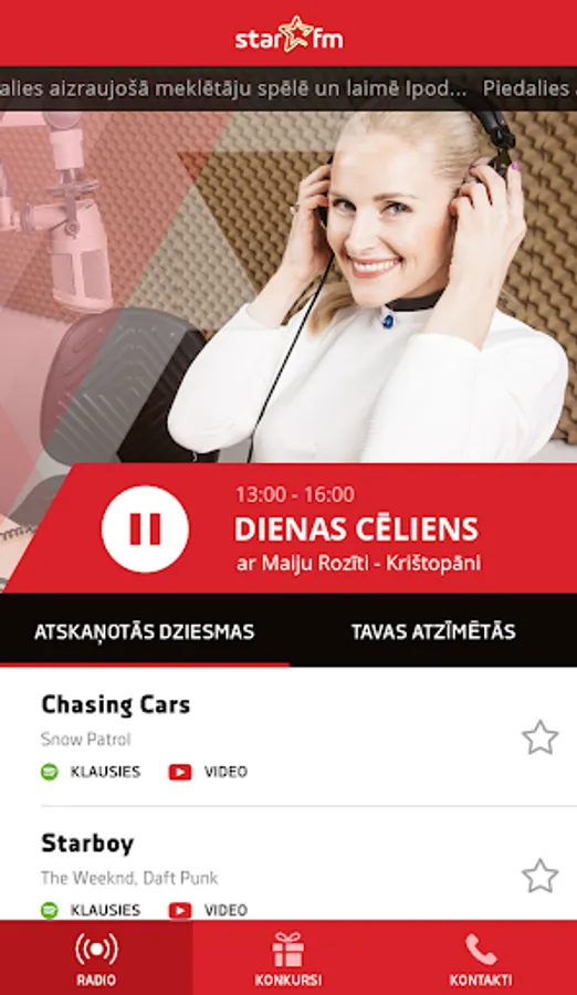 Whenever you turn on the radio Star FM, you in all topical in today's music hits and the gold from both the Latvian and the world. Application can mark your favorite songs and find out how you can get valuable prizes.
