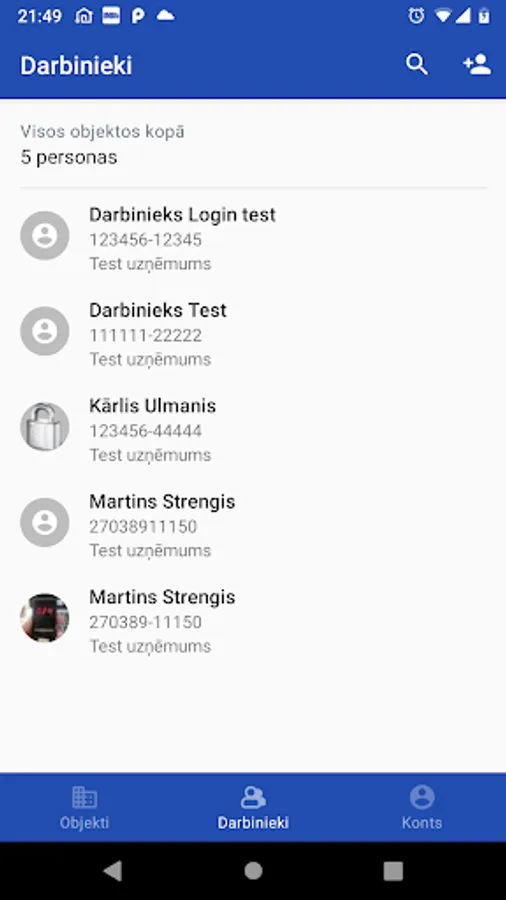 The amalgamation panel in the application allows you to easily add and manage employee and visitor accounts and contactless cards.