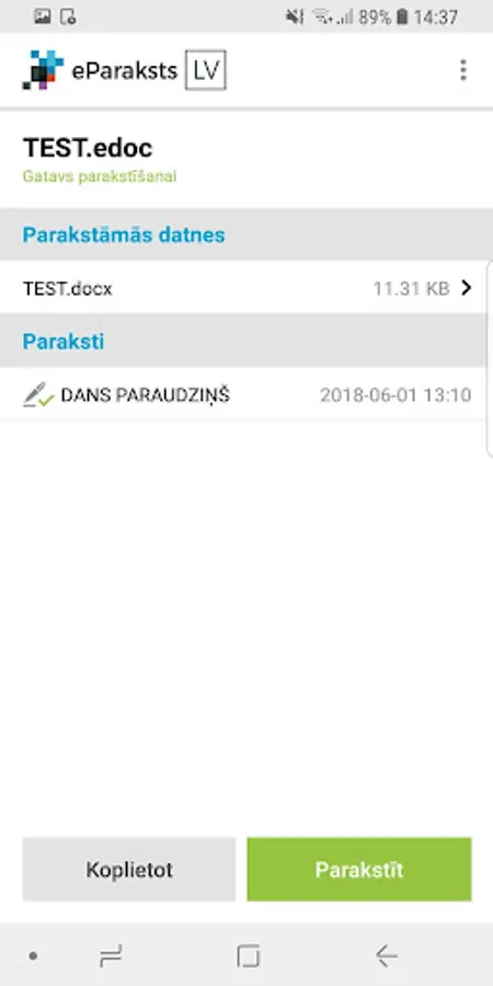 The mobile app eParakstsLV provides signing of documents with a secure electronic signature on the wiser device, as well as checking already signed documents. To sign documents in the eParakstsLV app, you need to purchase the eParaksts mobile app and create an eParaksta password at eParaksts.lv.