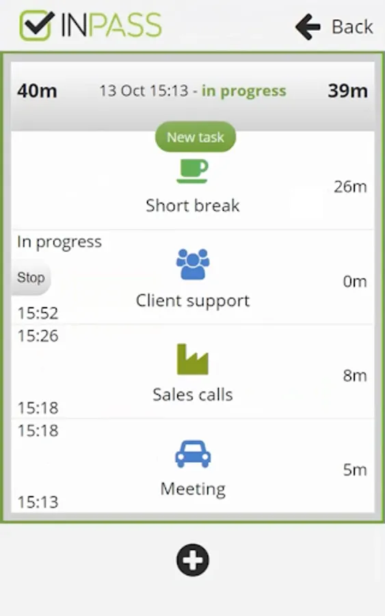 - Report time spent on tasks, breaks or producing goods.