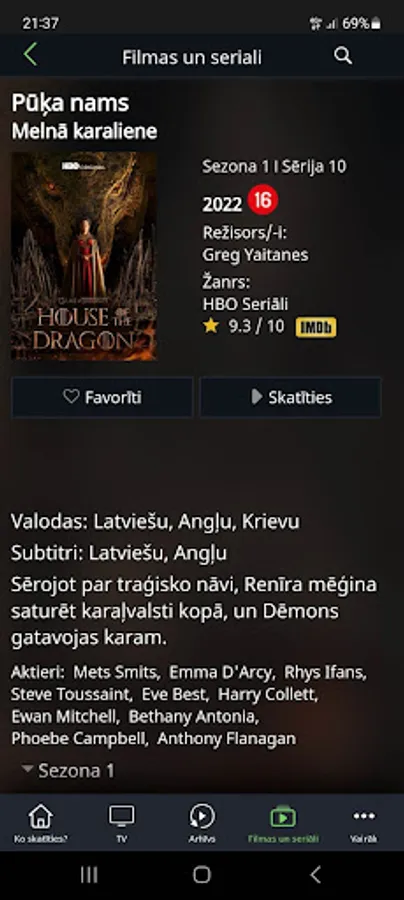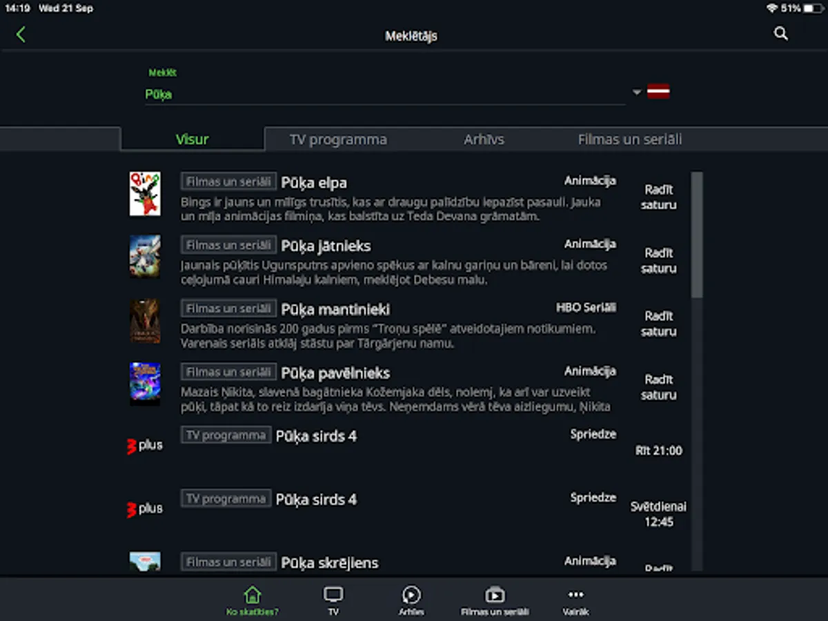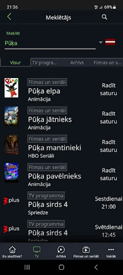 Search engine - quickly and conveniently searches for films, programs, concerts by their title in Latvian and in the original language
