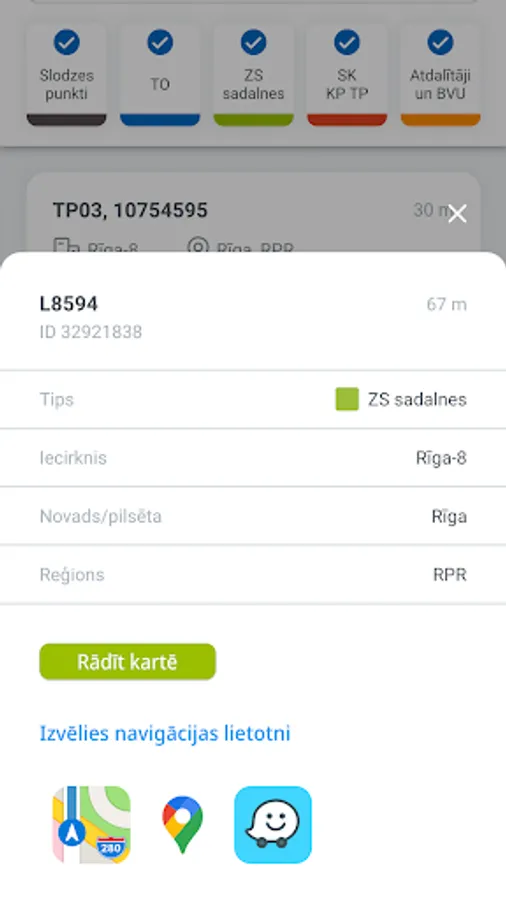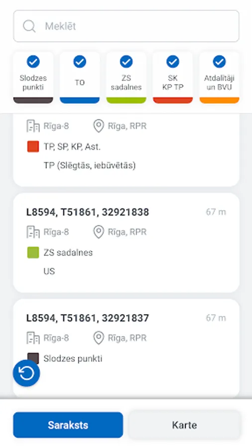 The main purpose of the application is to provide JSC "Sadales tīkls" cooperation partners and JSC "Sadales tīkls" employees with a tool that allows finding JSC "Sadales tīkls" objects and choosing one of the routing applications (such as Waze; Google maps; Maps.me; HERE WeGo ) to route to the found object.