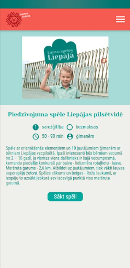A game with orientation elements and 10 questions for families with children in Liepaja Old Town. It will be especially interesting for children aged 2 - 10, if at least one participant is in this age group, the team participates in the competition for the prize - a large toy - a lion. The length of the route is 2.6 km. When answering questions, lion's superpower badges are collected. The beginning and end of the game - in Rose Square, with the possibility to start it at any convenient point along the entire route.