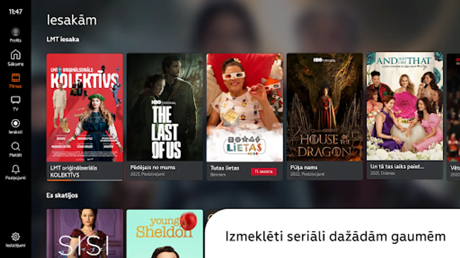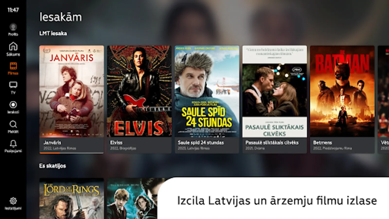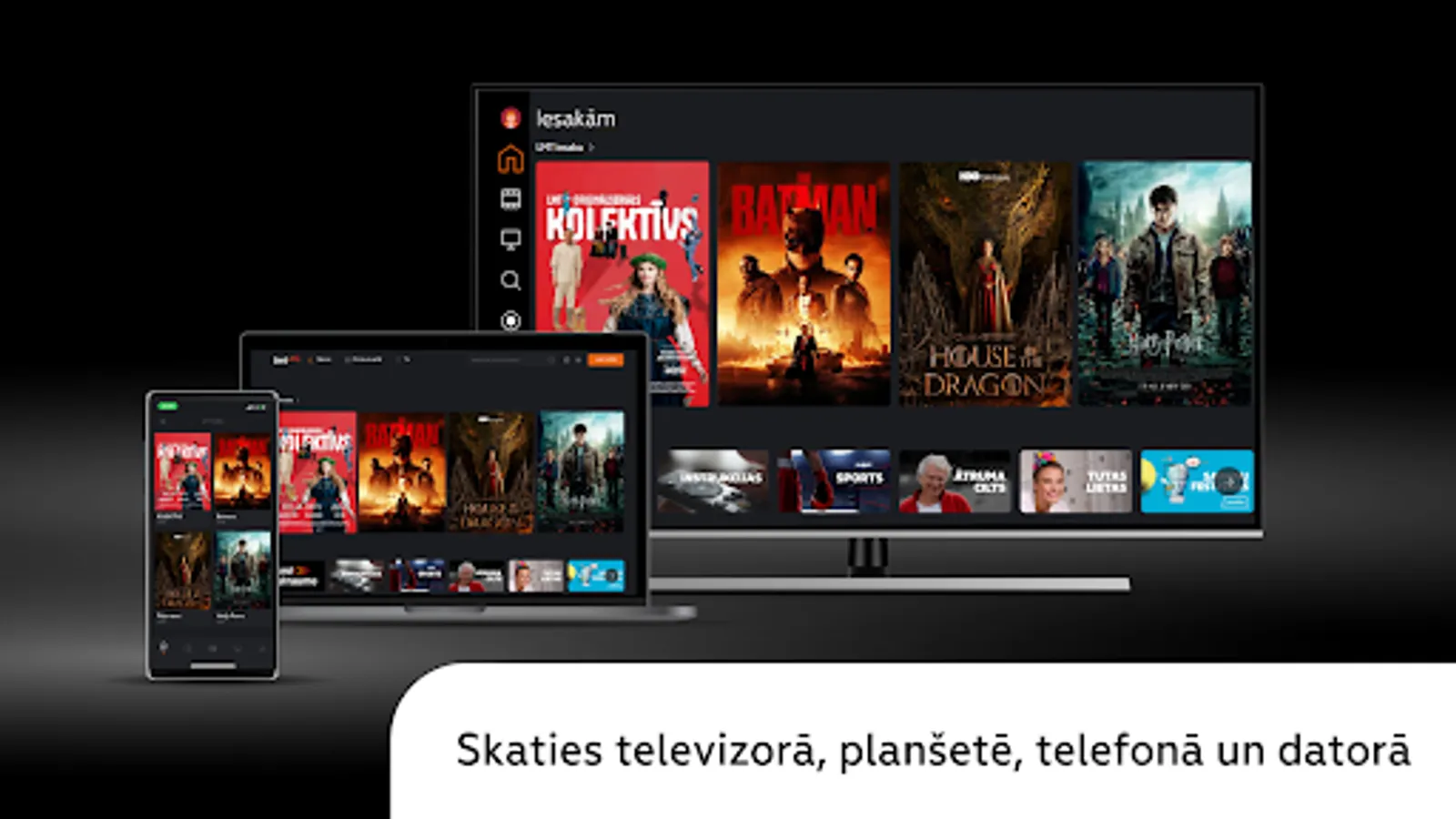 Enjoy the extensive entertainment options of Smart TV on all devices – TV, tablet, phone and computer, and with any internet connection! TV channels, Warner Bros. films, a selection of European cinema and series, content for children, Latvian events and current affairs in live broadcasts and video recordings - sports, concerts, shows, conferences, etc.