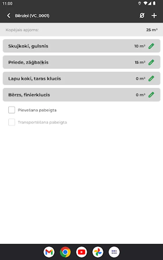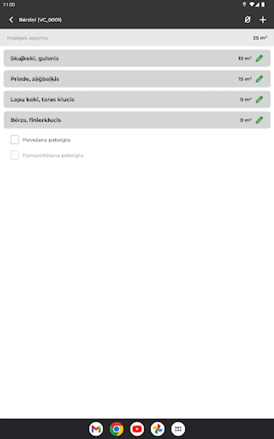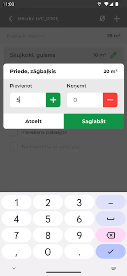 The application provides an opportunity for forwarder operators, timber truck drivers and logging foremen to record the amount of wood and inventory in the warehouse. The application is a part of the LVM GEO platform for forest management companies, ensuring operational data circulation and information flow from warehouses and supporting the delivery planning process. The functionality of the app is available only to authorized users who have been granted access by one of our customers.