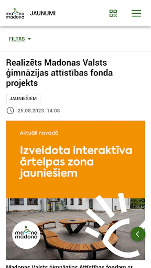 Madona county mobile app. The opportunity to submit an application, a report to the municipality, participate in surveys and public discussions, get acquainted with news, events and information on tourist facilities is ensured. Receive offers intended for residents of the region, as well as operational news about important events in the municipality.
