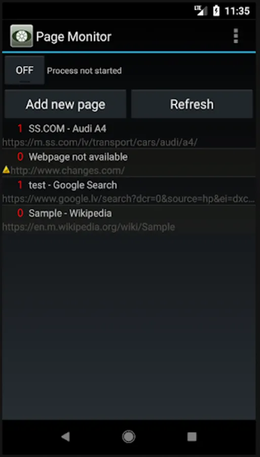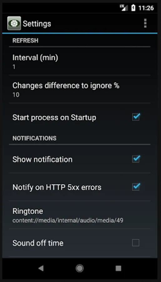 This application compares web page changes with customizable changes percentage and update interval. If any changes are detected, the user gets a notification.