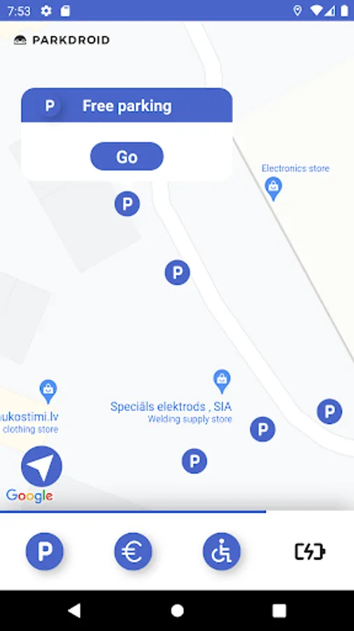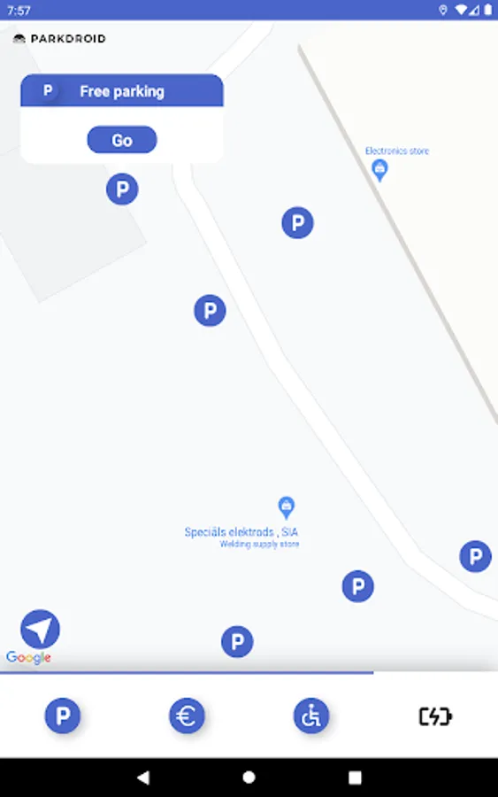 2. ParkdoidGO shows unoccupied parking lots location and helps to navigate to it;