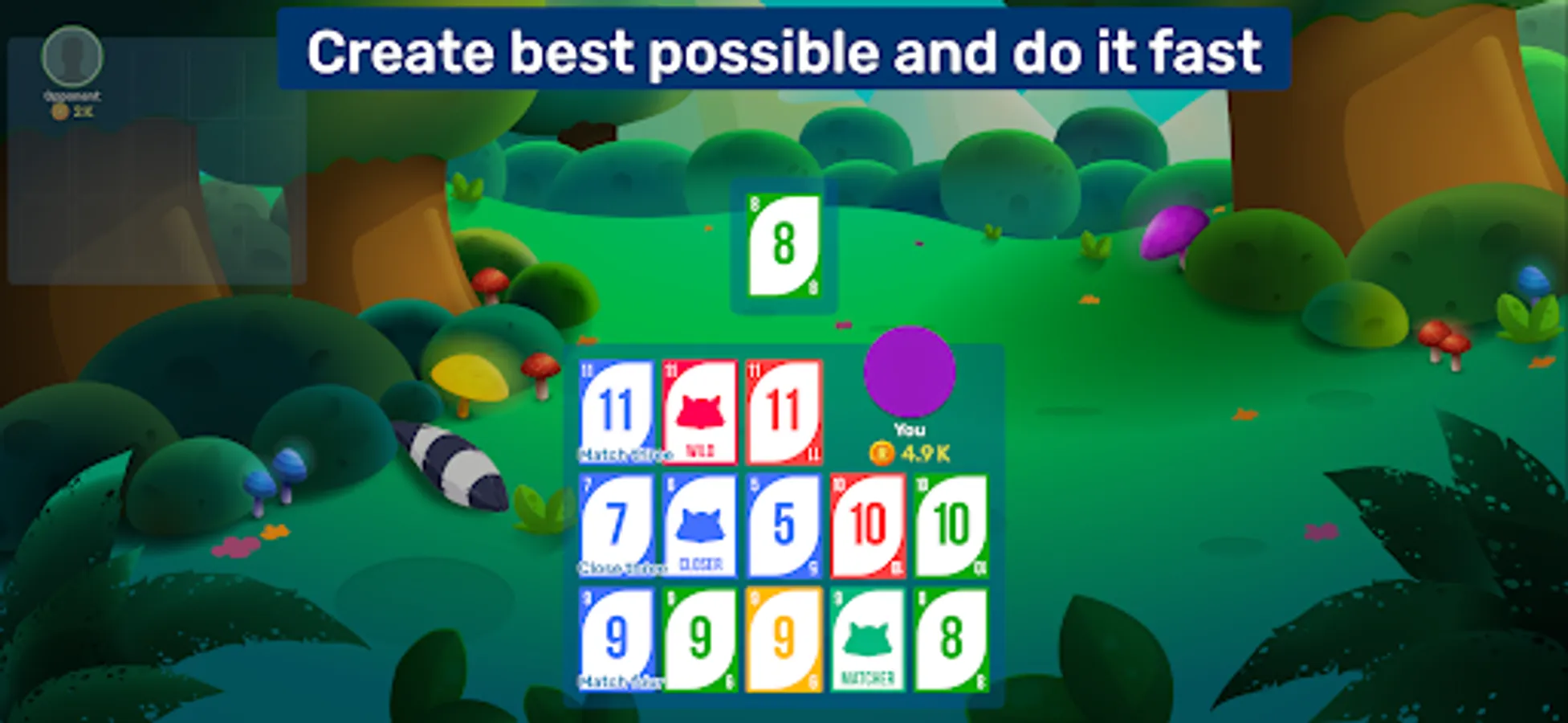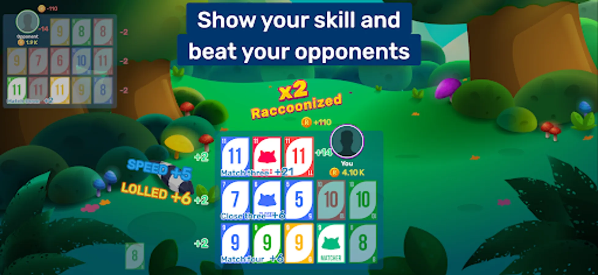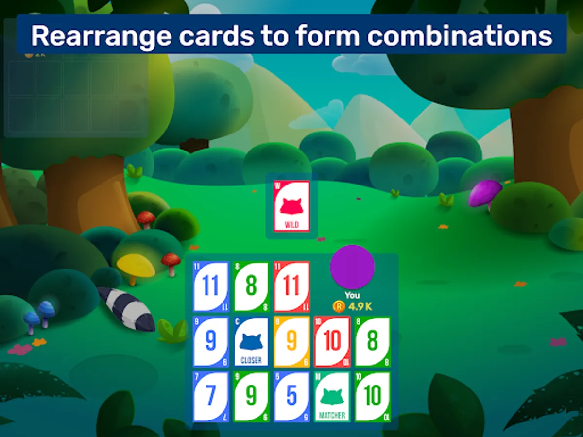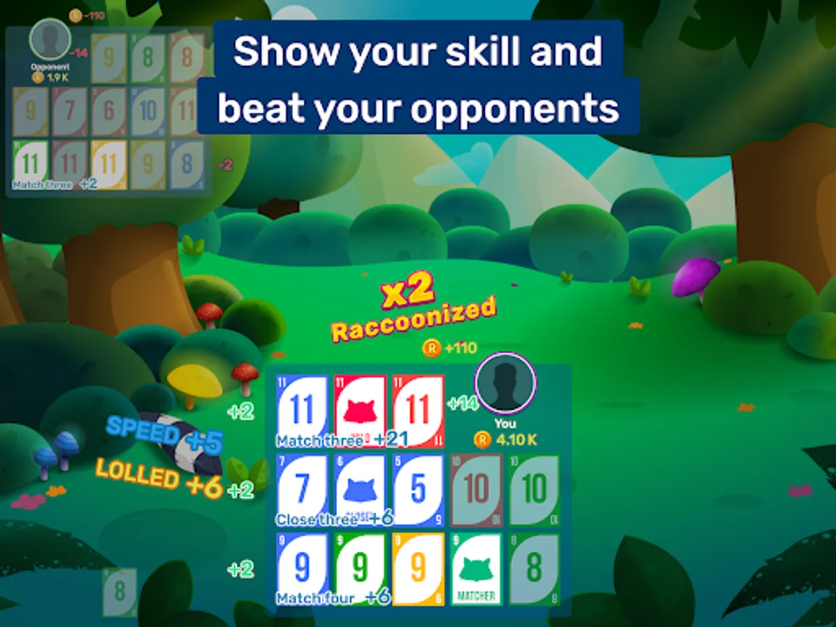 Match cards of the same rank or sequence of the same suit, with the goal being to form the best possible three-line combination. Speed bonuses and additionally seven wild cards are available to help you — also known as Raccoons. There are a lot of possible variations, ensuring fun is always guaranteed!