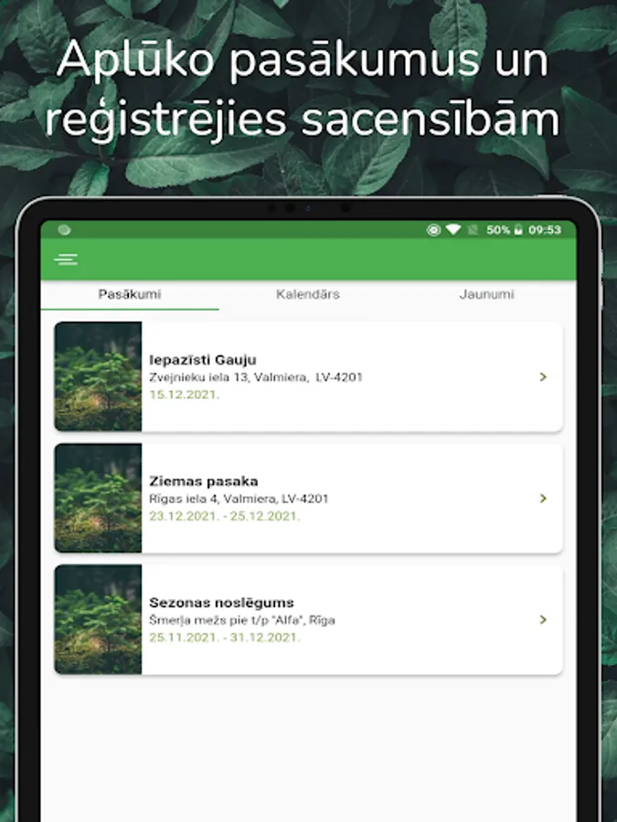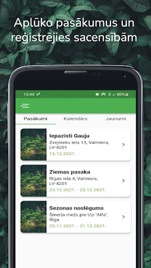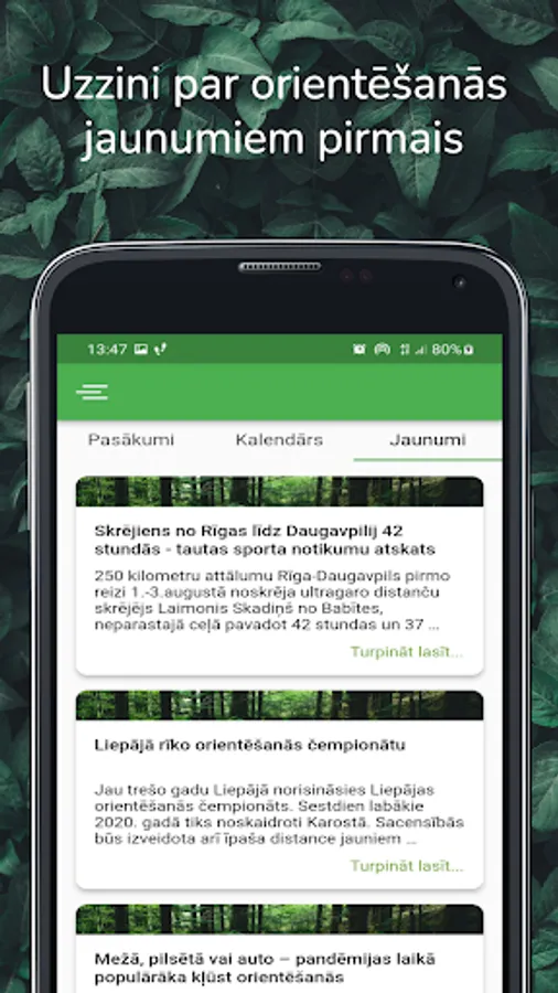 Participants can view the list of events and information about each of the added events, perform self-registration for orienteering competitions, add or delete the registration, as well as get acquainted with orientation news.