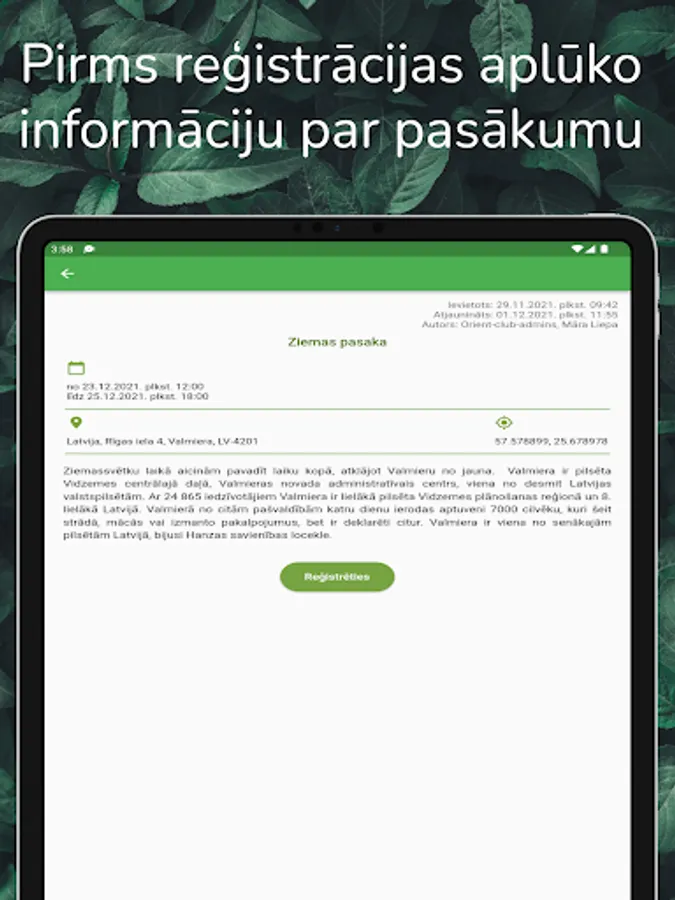 Competition organizers can add new events, export the list of registered participants, add articles in the "News" section, informing users and orienteering enthusiasts about orienteering news.