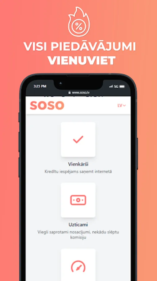 SOSO.lv is an online mobile app that helps you compare loans available in Latvia in a convenient online mode, without leaving your home. Compare, choose and spend the money you receive as you see fit!