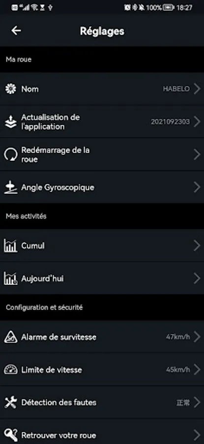 HABELO is a customized APP for the “HABELO wheel”.HABELO connects the wheels via Bluetooth,displays wheel status,changes wheel settings,upgrades wheel firmware,etc.
