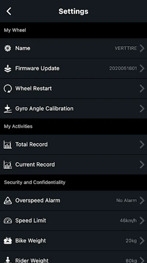 VERTTIRE is a customized APP for the“VERTTIRE wheel”.VERTTIRE connects the wheels via Bluetooth,displays wheel status,changes wheel settings,upgrades wheel firmware,etc.