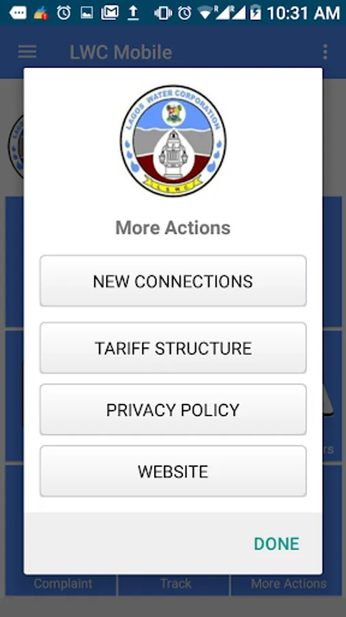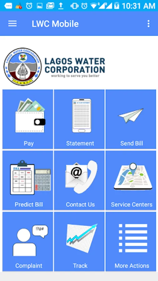 LWC Mobile allows you to know your outstanding balance, generate a statement, predict a bill, send queries, track new connection status, view historical readings as well as bills.
