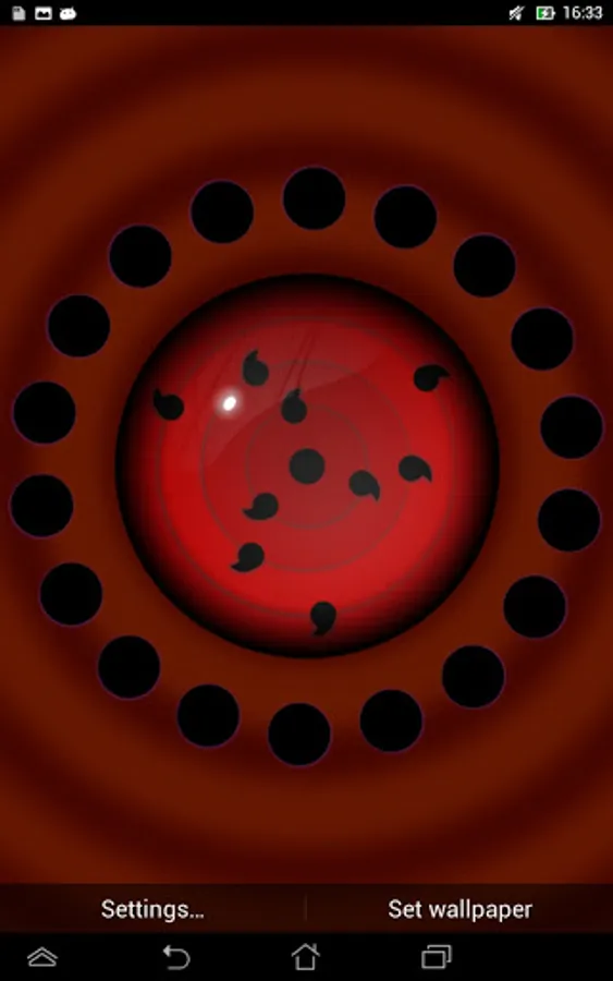 Sharingan Rinnegan Live Wallpaper use OpenGL render technique with lively effects. You will really own realistic Doujutsus in your device's screen.