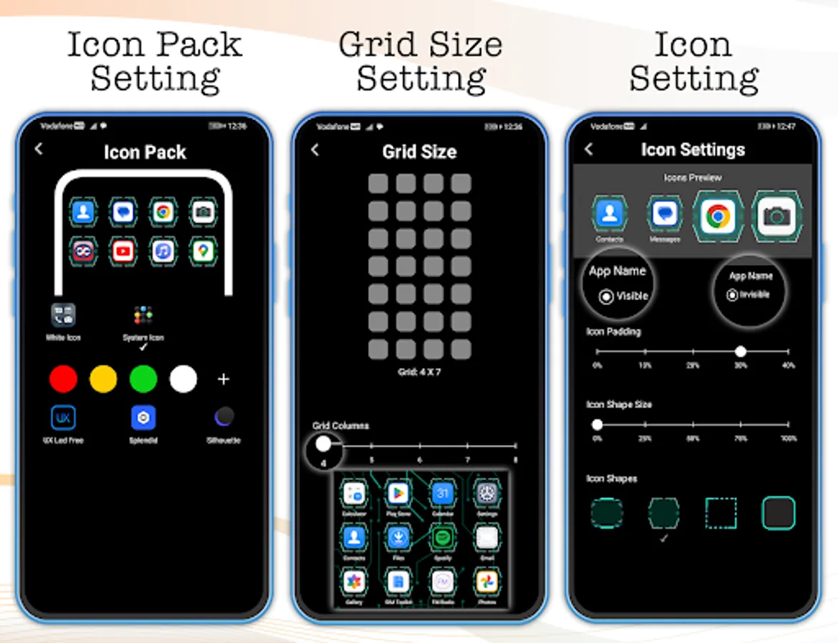 Choose from two different icon packs in Nextron Launcher 2023 – a simple pack. You can also customize the color of the icon packs to match your preferences. You can also apply icon pack of your choice as well.