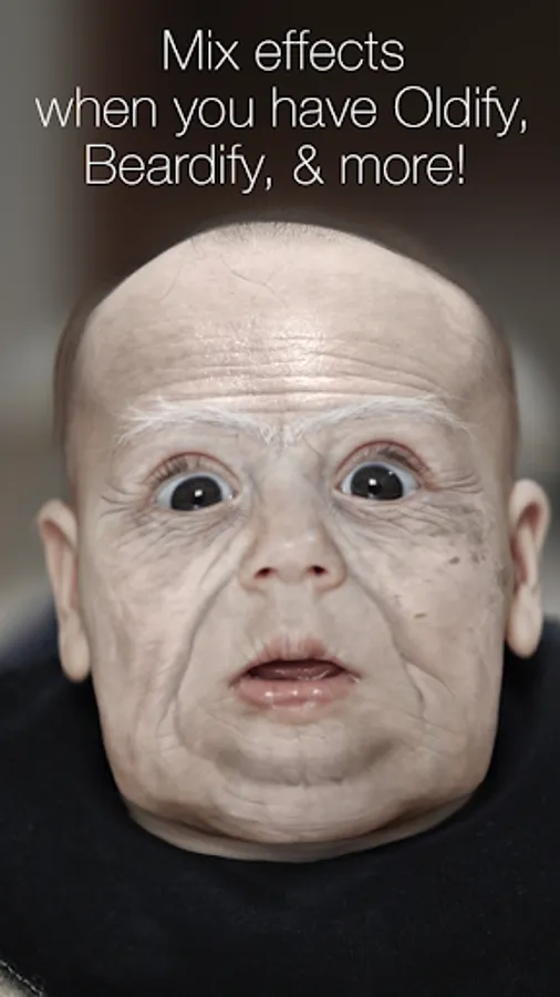 Effectify is simple. Take a selfie π·π§, then give yourself a mustache π¨(or beard!), make yourself OLD π΅, go Bald π΄, and get Fat π. Even become a Zombie π±, Vampire πΉ, WerewolfπΊ& more! πππ