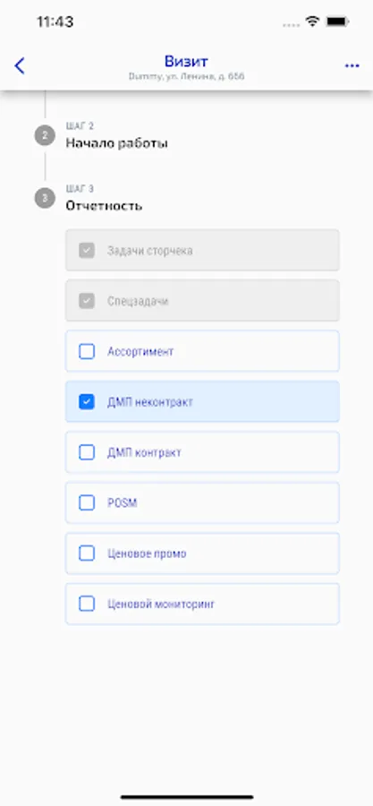 The application controls geo coordinates, start and end times of the visit. In the application, you can find out the subordinate employees went to work, at which point of sale they are or at what point the last visit was.