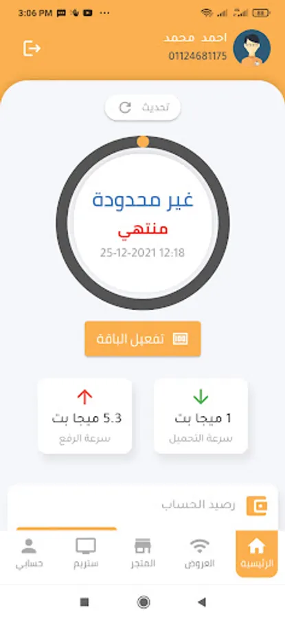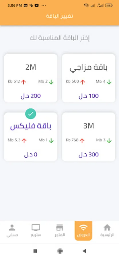 The application enables the company's users to follow up on their internet subscription, recharge the balance, and change the internet package.
