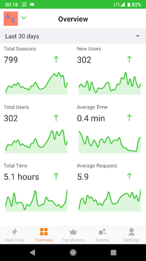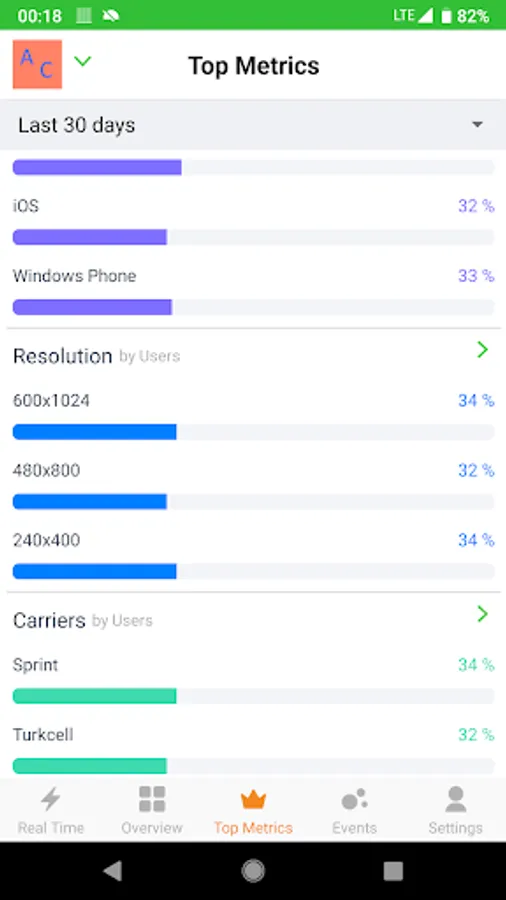 Connect and get real-time sessions, users, countries and time spent together with top platform, top resolution, top carrier views and more. Never miss an analytics data when you are travelling!