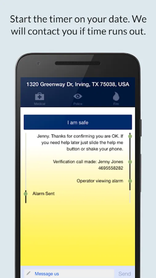 If the safety timer runs out, we will phone and check if you are OK. You will need your safe word so that we know we are talking to you and not your date. If we cannot reach you, we will phone your emergency contacts.