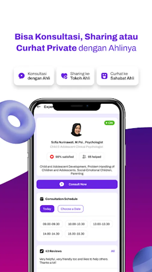 - Consultation with Experts: In this service you will meet with an expert (psychologist, psychiatrist, coach or counselor) to find out what condition you are experiencing and get direct solutions from experts regarding this problem.