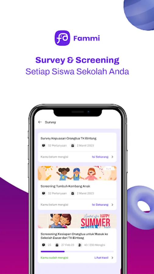 Parents and teachers have challenges with the various problems experienced by children or students at every age and stage of development. This will also affect the behavior and mental health of children in the future. To be able to overcome this, Fammi comes with a variety of interesting features: