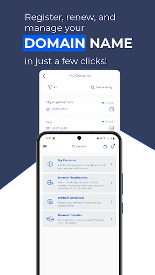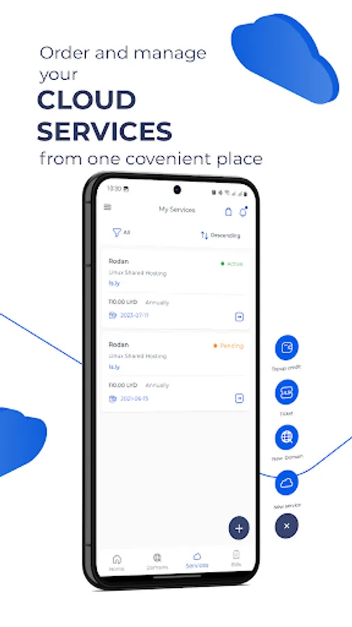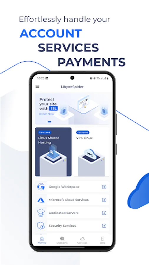 Libyan Spider mobile app offers a smooth and effortless experience, allowing you to easily order, renew and manage your domain names and cloud services, pay bills, and access customer service with just a few clicks.
