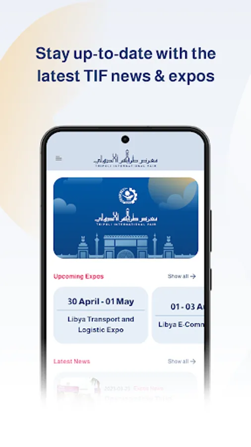 Introducing the TIF App - Your ultimate companion to Tripoli International Fair! Stay up-to-date with the latest news, exhibitors, partners, videos, and regulations related to the fair. Register for TIF editions, book your booth, get notifications, and enjoy a whole new experience, all in one comprehensive app.