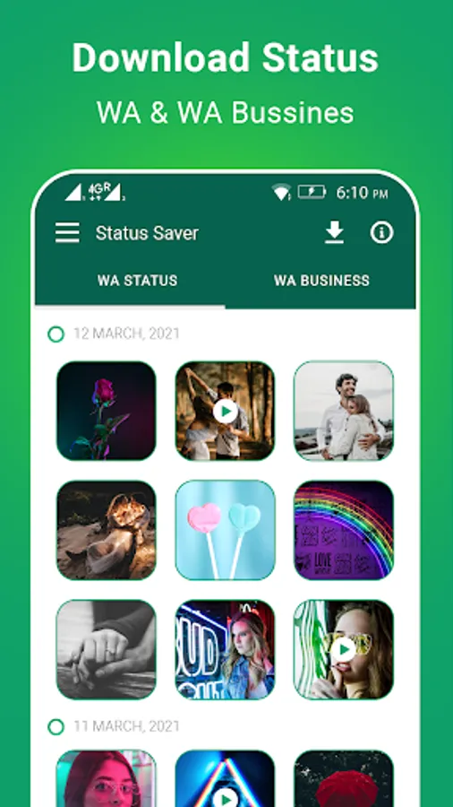 ✔ Your Statues videos & images are saved into a status app and mobile gallery.