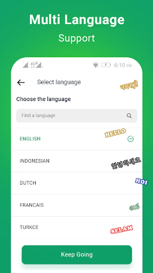 English, Hindi, Marathi, Gujarati, Tamil, Telugu, Punjabi, kannada, malayalam, odia, Indonesian, Arabic, Malayalam, Spanish, French, Russian, Turkis, Dutch.