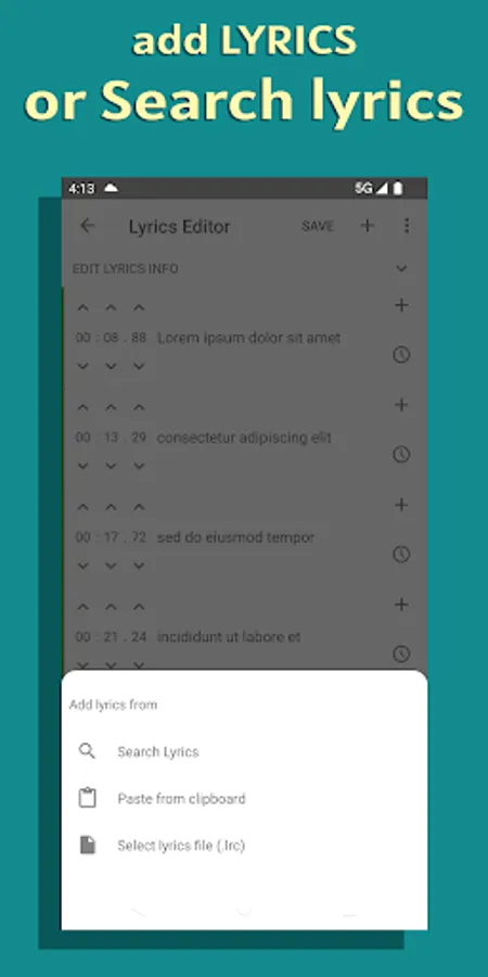 Browse and edit lyrics file and embed to your music on SDCard.