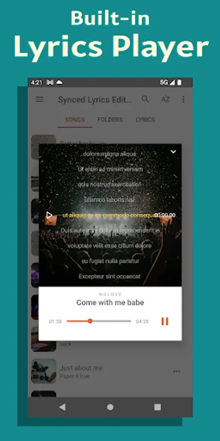 - Built-in Lyrics player play synced lyrics like karaoke style.