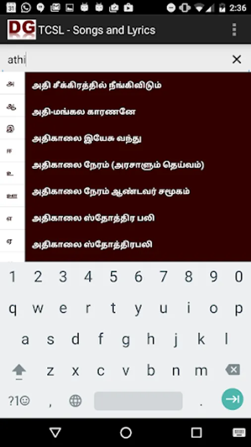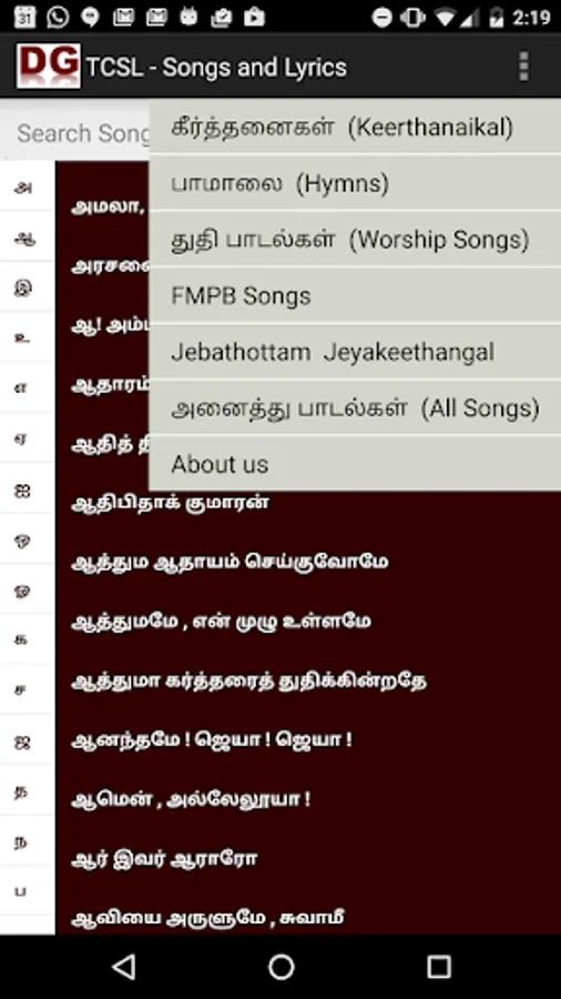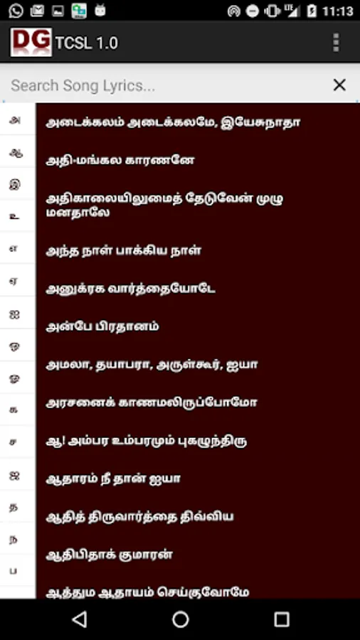 A very good compilation of Tamil Christian Songs Lyrics(Keerthanai, Paamalai, Jebathotta Jeyakeethangal, FMPB Songs and Tamil Worship Songs) and English Christian Songs Lyrics(Hymns, Chorus and Praise and Worship) which will uplift your soul towards Jesus Christ, the Savior of the world. A very user friendly application which fetches the songs from Indians for Christ (IFC) indiansforchrist.org. Features include index searching, very easy search filter in both Tamil and English keyboard and share the song links via WhatsApp, GMail, Yahoo, Hangouts and social media.