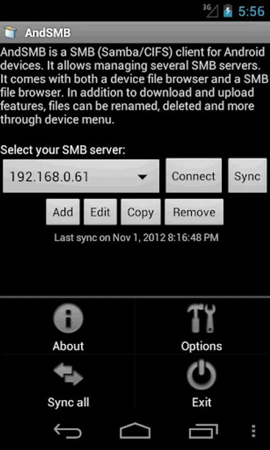 This application unlocks advanced features for AndSMB application. It acts as a key. You do need to have AndSMB (free) application installed. AndSMB is a Samba, CIFS client for android phones and tablets. It allows connecting Windows/Samba network shares over Wifi, 3G/4G, VPN to browse, upload, download and synchronize files/folders. Basic operations such as rename, delete, create folder, view file info are available.
