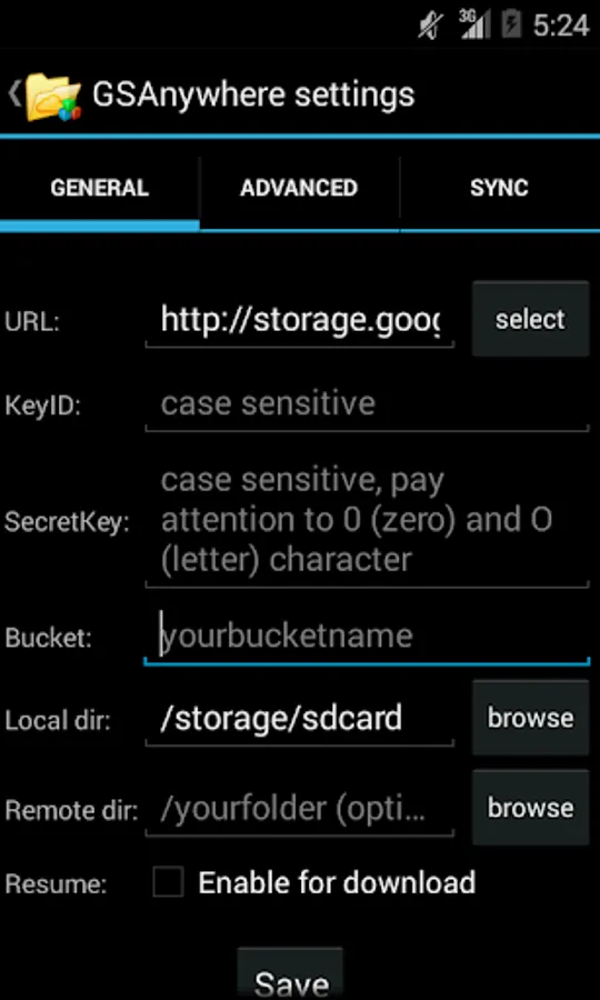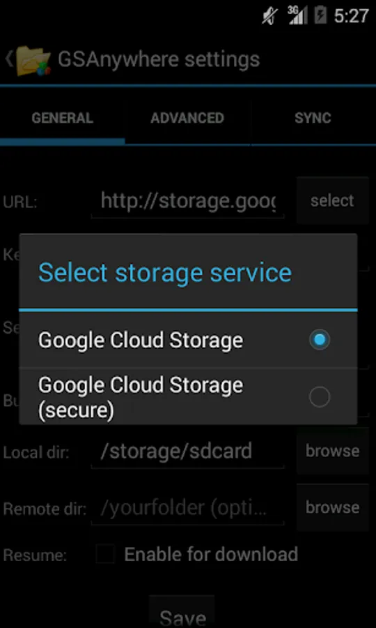GSAnywhere is a client for Google Cloud Storage. It provides file manager features (upload, download, rename, delete, open, permissions, search and more). It can manage multiple configurations (keys/buckets). Free version comes with all basic features, Pro version enables folder synchronization, widget and scheduling.