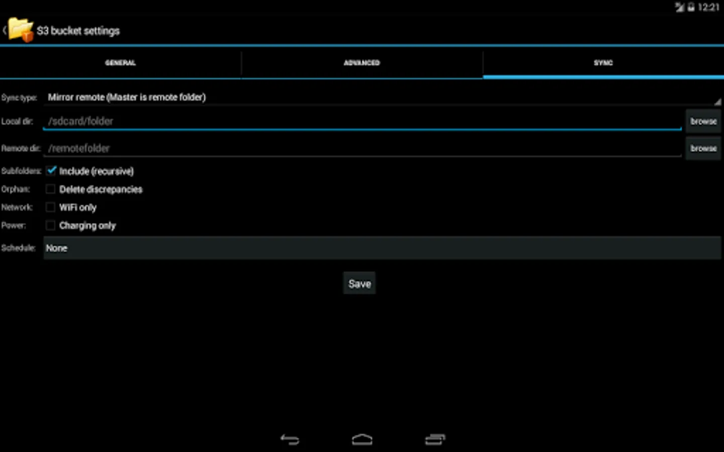- Folder synchronization (mirror remote/local, scheduling and widget).