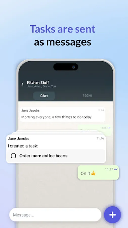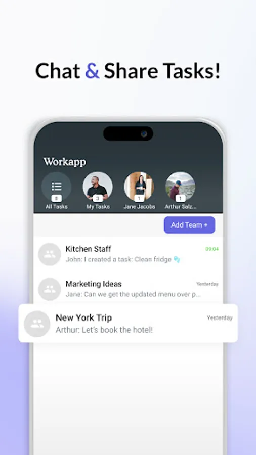 Work App is an easy way to send quick tasks and chat with your team, coworkers and friends. It's perfect for team leaders, entrepreneurs and anyone who is working as part of a team.