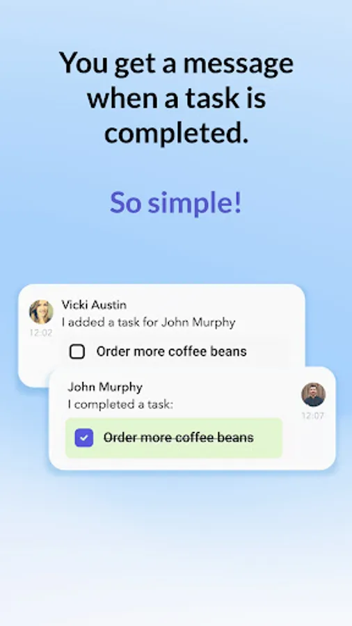 When your contacts complete a task you'll receive a message, keeping you up to date with ease.