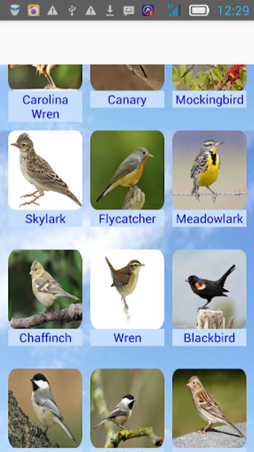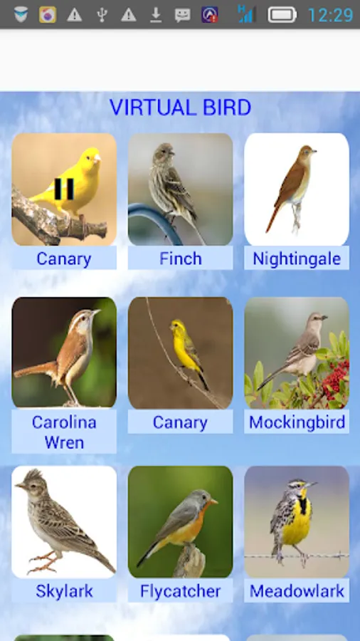 You will see image of each bird. Touch the bird ‘s images to hear singing sound.