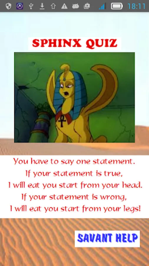 You all know the story about Egyptian Sphinx and her dead quiz game.