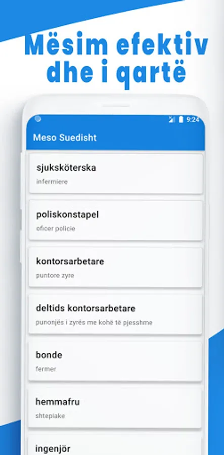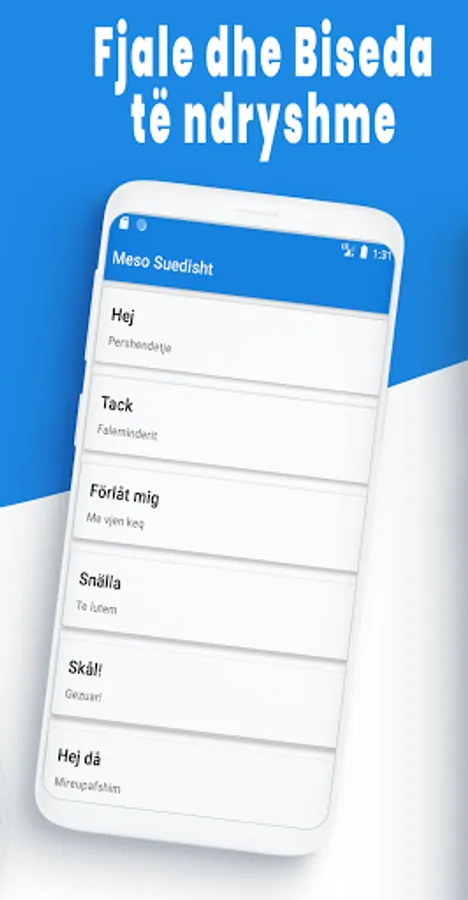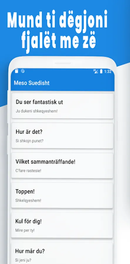 Meso Suedisht eshte nje aplikacion falas ku mund te gjuhen falas,me kategori te shume llojshme,fjalet mund ti degjoni me ze.Fjale dhe biseda te shume llojshme, meso suedisht shqip do te jete falas gjithmone,Fjalet dhe bisedat mesime efektive dhe te qarta.