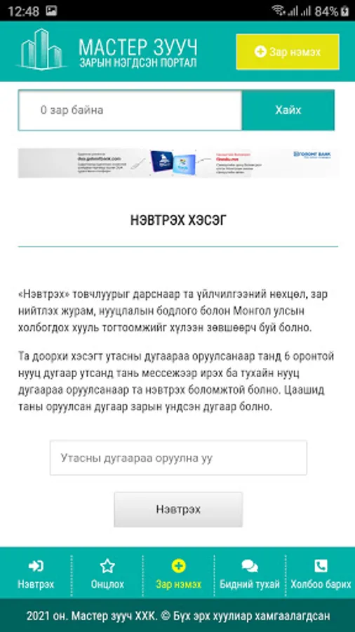 Мастер зууч зарын нэгдсэн портал сайт
