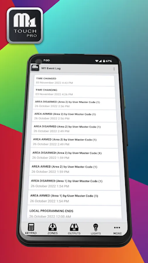 The M1 Touch App gives you control using your existing Wi-Fi connection or from anywhere in the world using 3G & 4G over a secure connection to your panel.