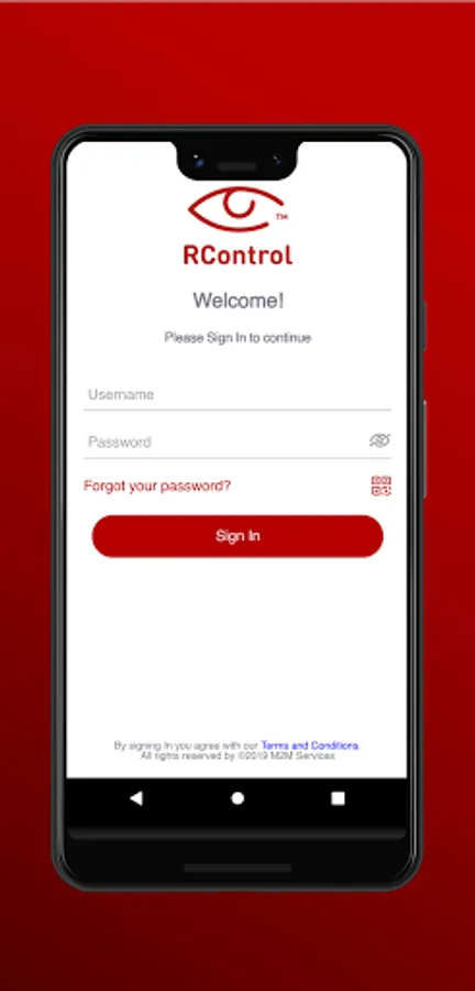 The RControl application requires an M2M Services cellular communicator, properly connected and configured with your alarm panel, and valid account credentials. Feature availability varies based on system, equipment, and service plan. Contact your alarm installer or write to us at support@m2mservices.com for more information.