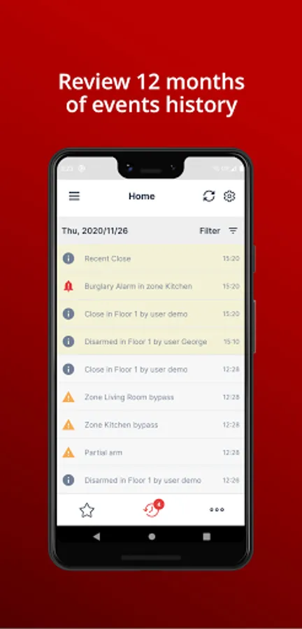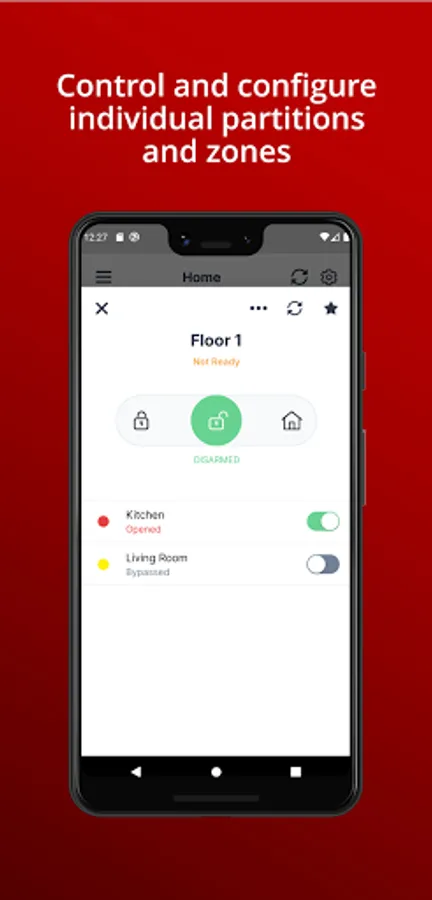 • Remotely arm and disarm your alarm system (supports Arm Stay, Arm Away and multiple partitions).