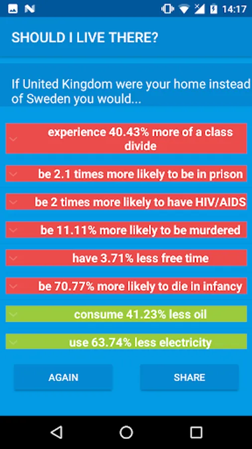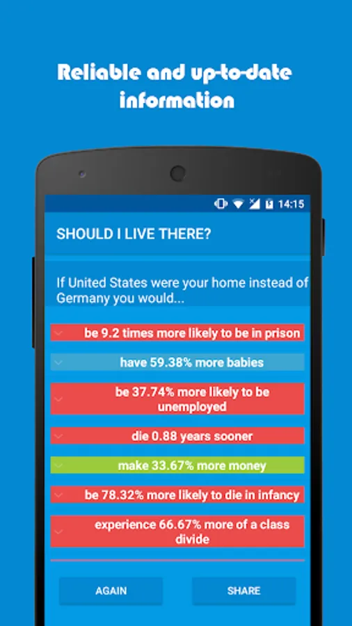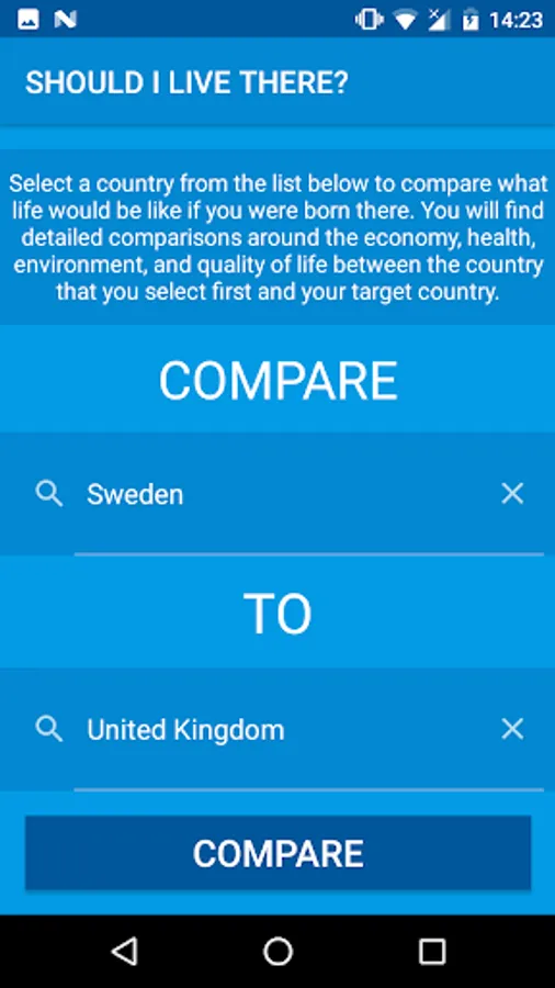 "Country Comparison" is your gateway to understanding life outside your home. Use our country comparison tool to compare living conditions in your own country to those of another. Start by selecting a region to compare on the map to the right, and begin your exploration.