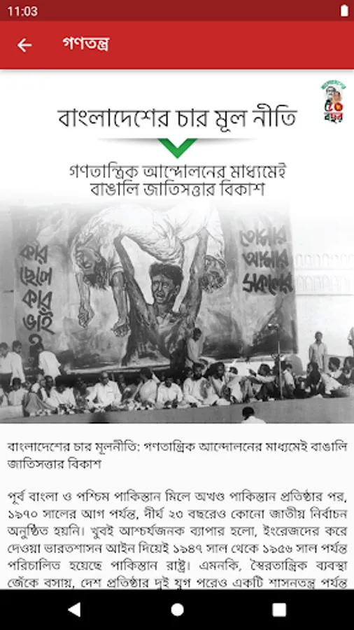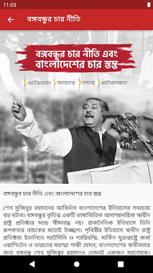 The four principles of Bangabandhu and the four pillars of Bangladesh