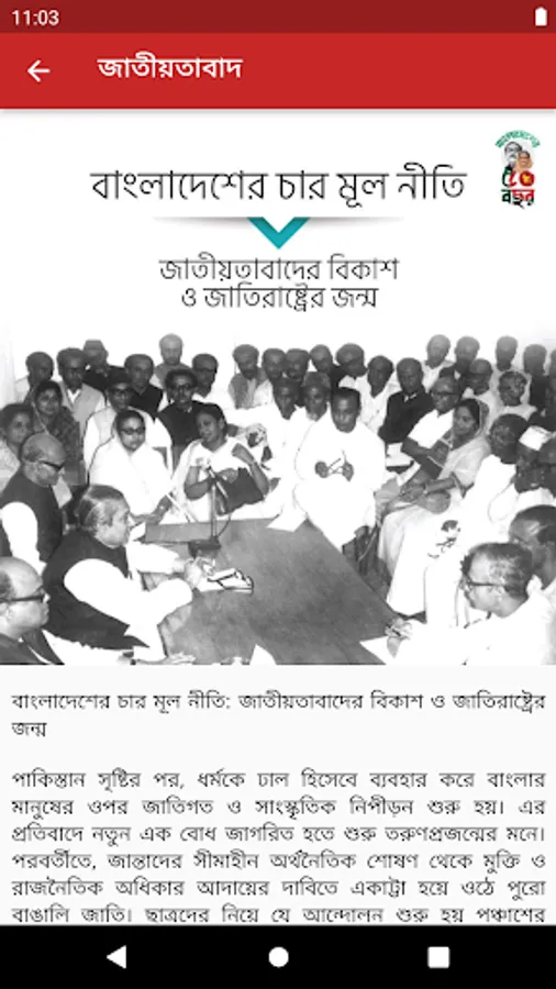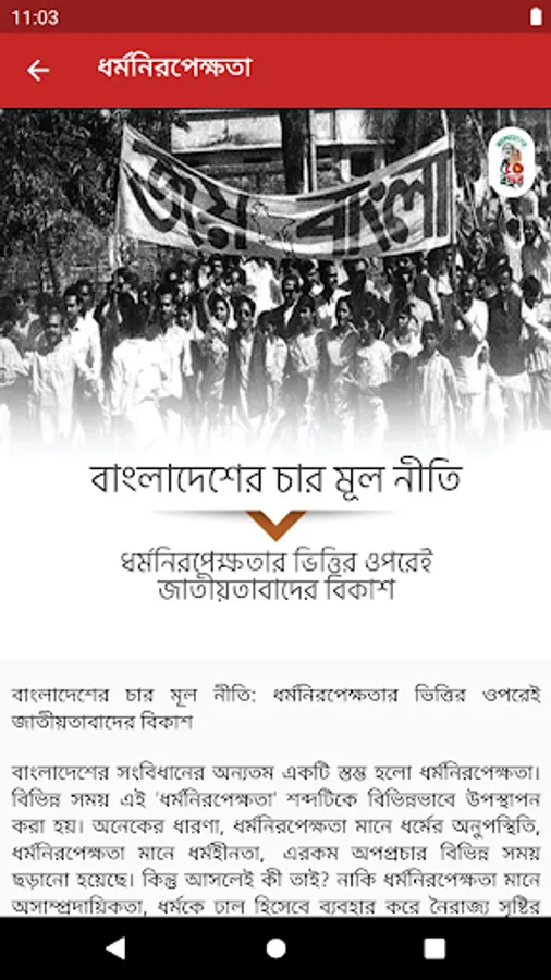 On 16 and 17 February 1972, the first meeting of the central executive parliament of the ruling Awami League was held in independent Bangladesh under the leadership of Bangabandhu. The meeting elected Bengali nationalism, democracy, secularism and socialism as the state principles. It was promised to build an independent Bangladesh on the basis of these four principles.
